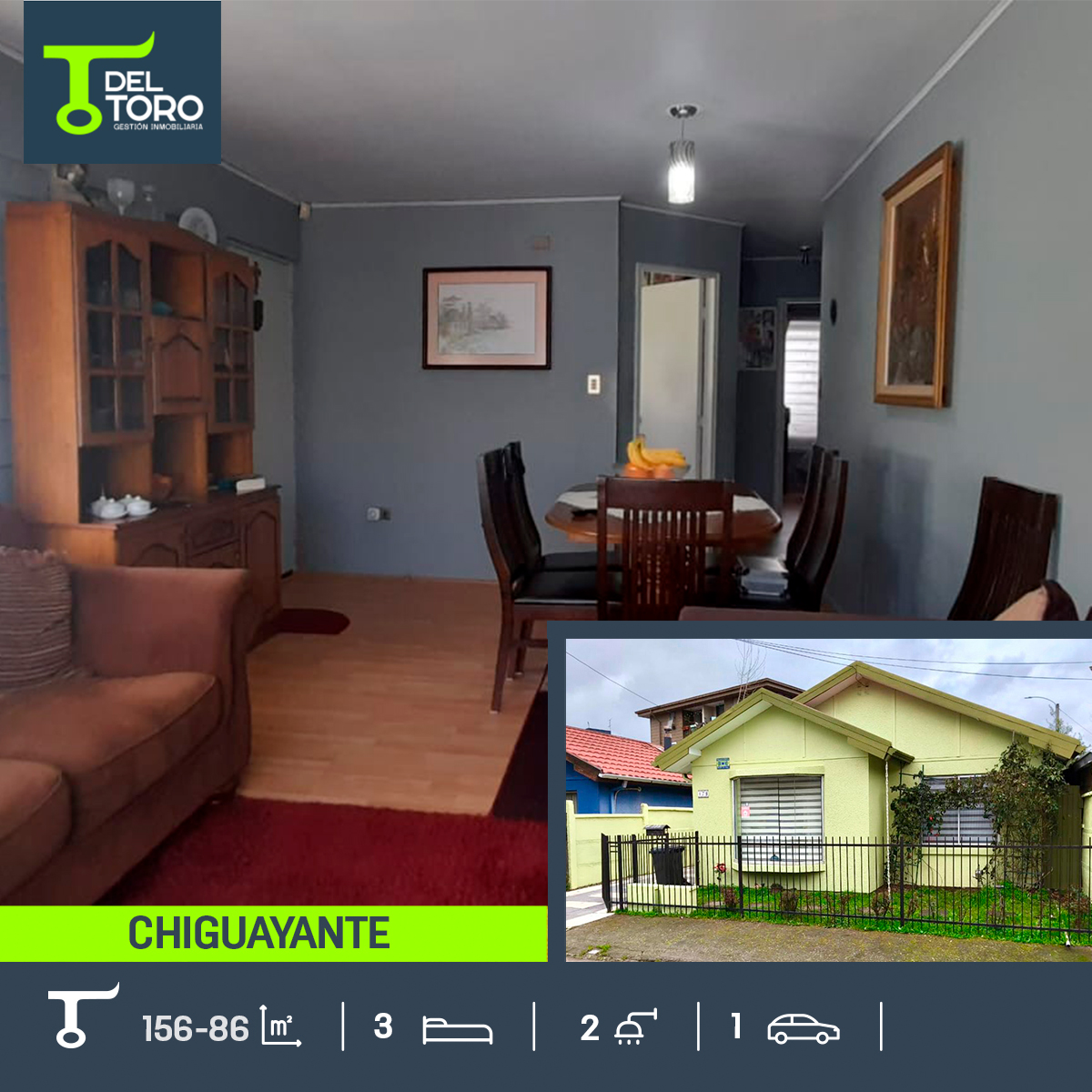 EN VENTA CASA EN CHIGUAYANTE, DE 3 DORMITORIOS, 2 BAÑOS Y 1 ESTACIONAMIENTO. VALOR: 2.995 UF